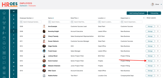 Alternatively, you can add Medical Records by first going to your Employees tab and selecting "Manage" next to the relevant employee:
