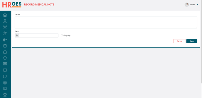 Once you've selected add, you will be prompted to give details of the Medical Record as well as a date of recording - you can also tick the "Ongoing" tickbox to highlight if this is an existing record: