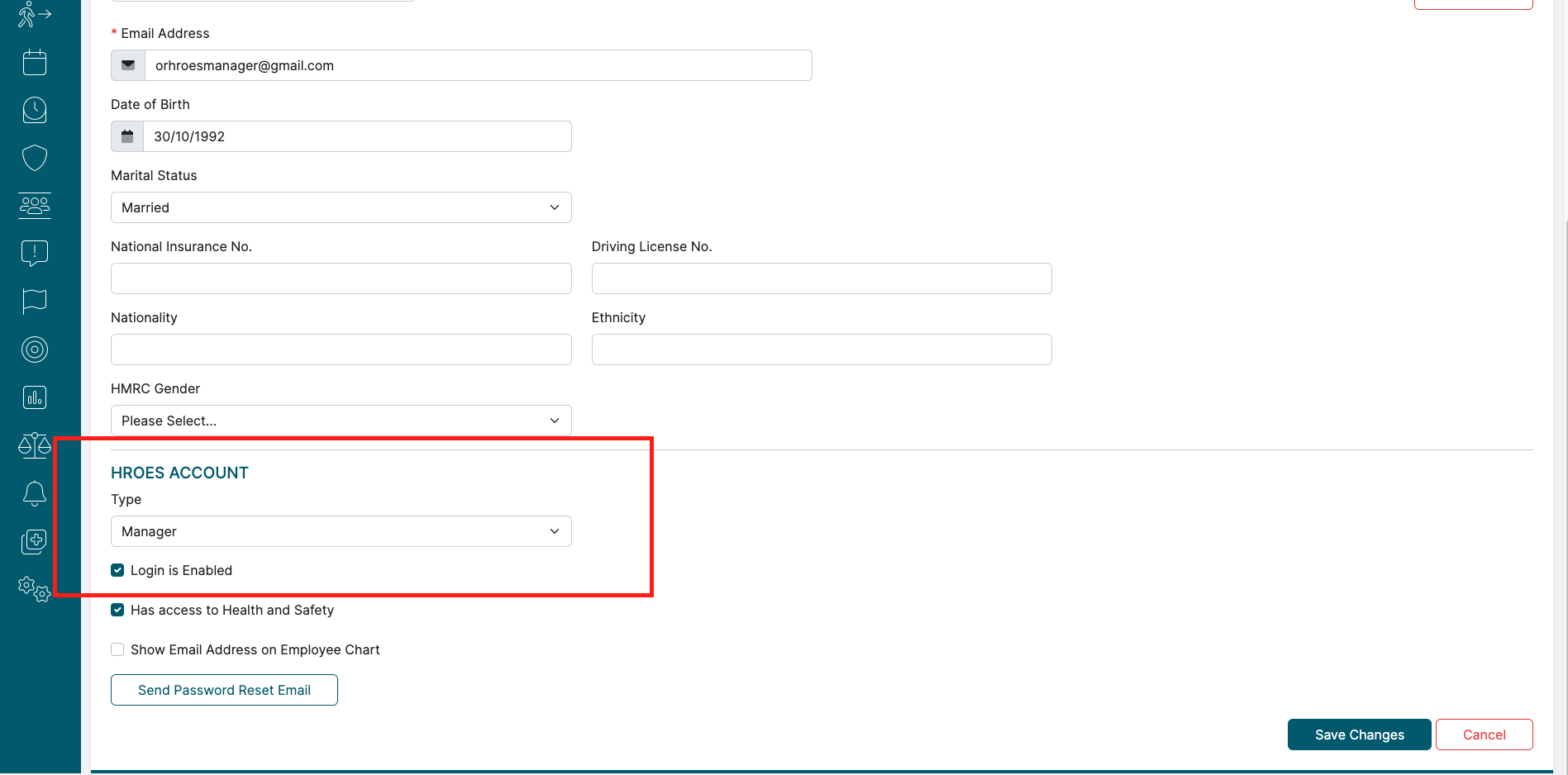Please note that the email address specified in here will be the email address that the employee uses to login to your HRoes system with.