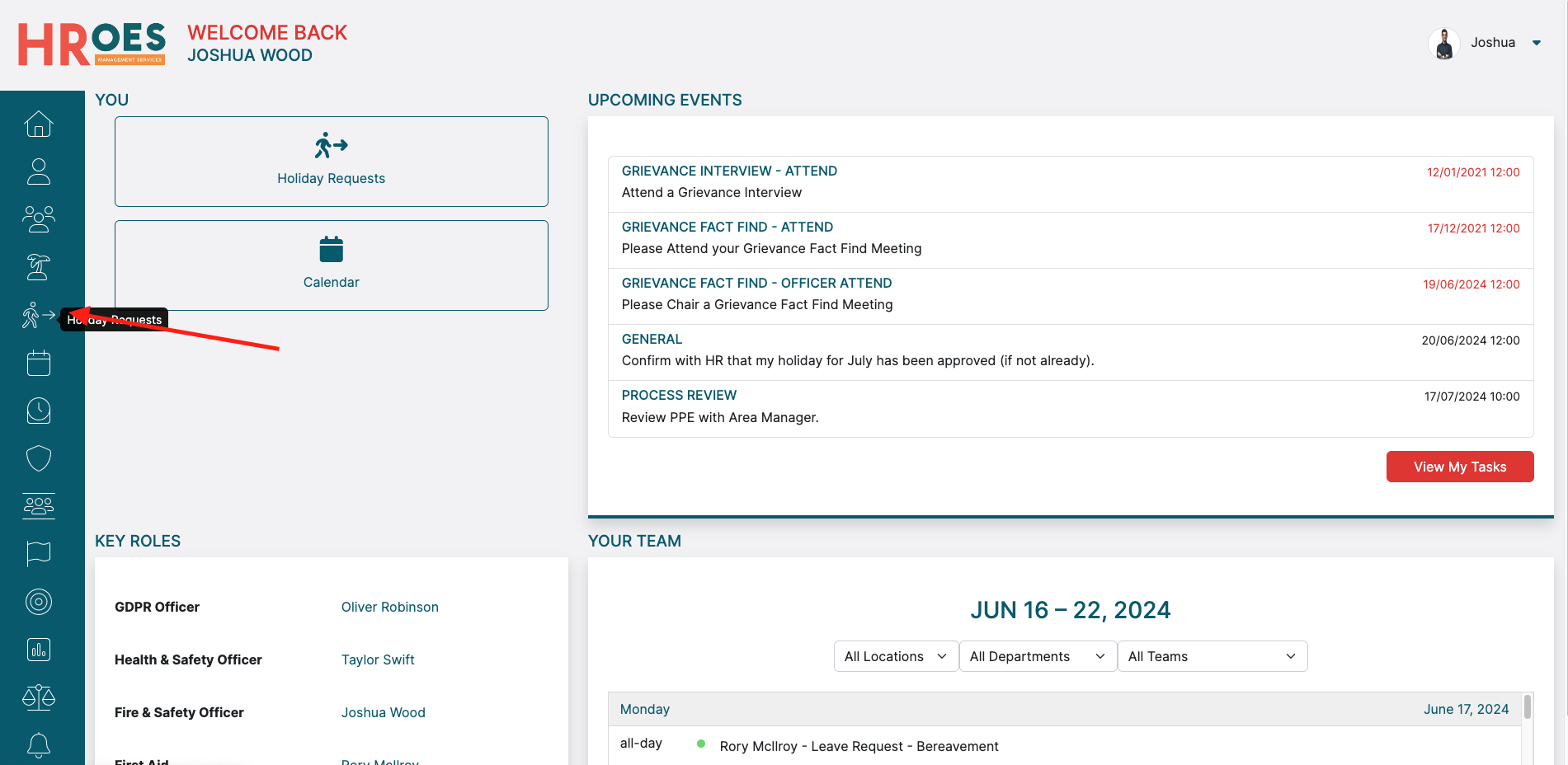 Alternatively, you can approve your employee's leave requests by first going to your "Holiday Requests" tab, highlighted below: