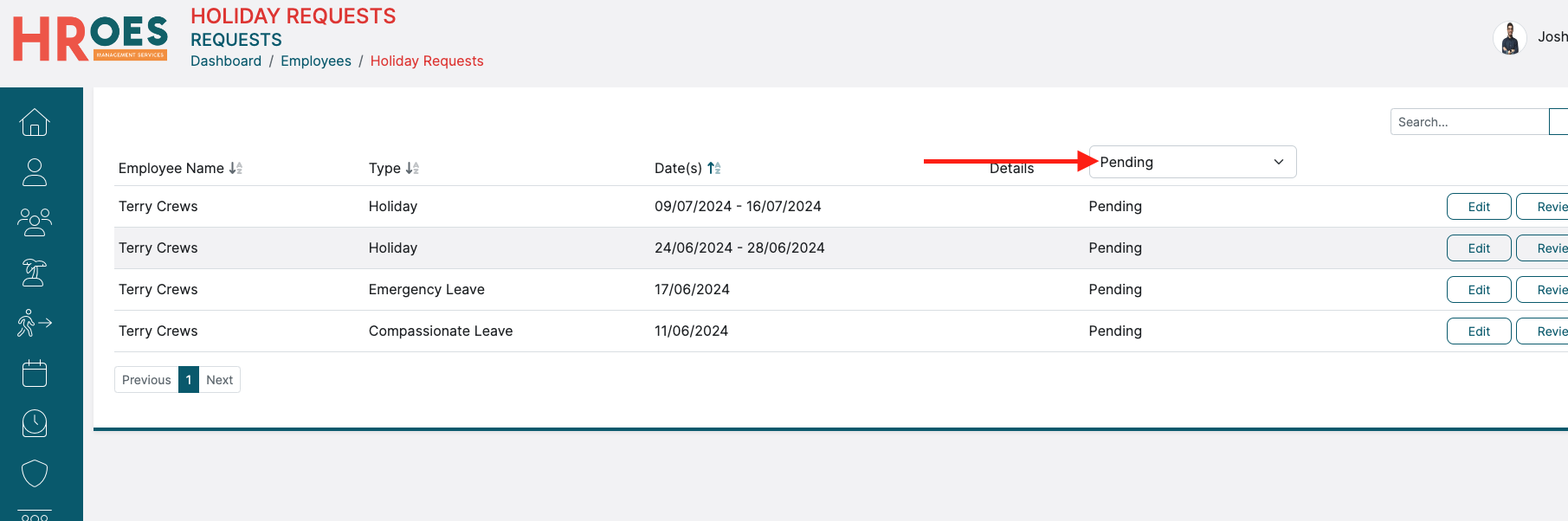 The immediate tab will show all pending requests you have yet to action, however you can toggle between those that you have approved and also previously rejected using the highlighted dropdown menu: