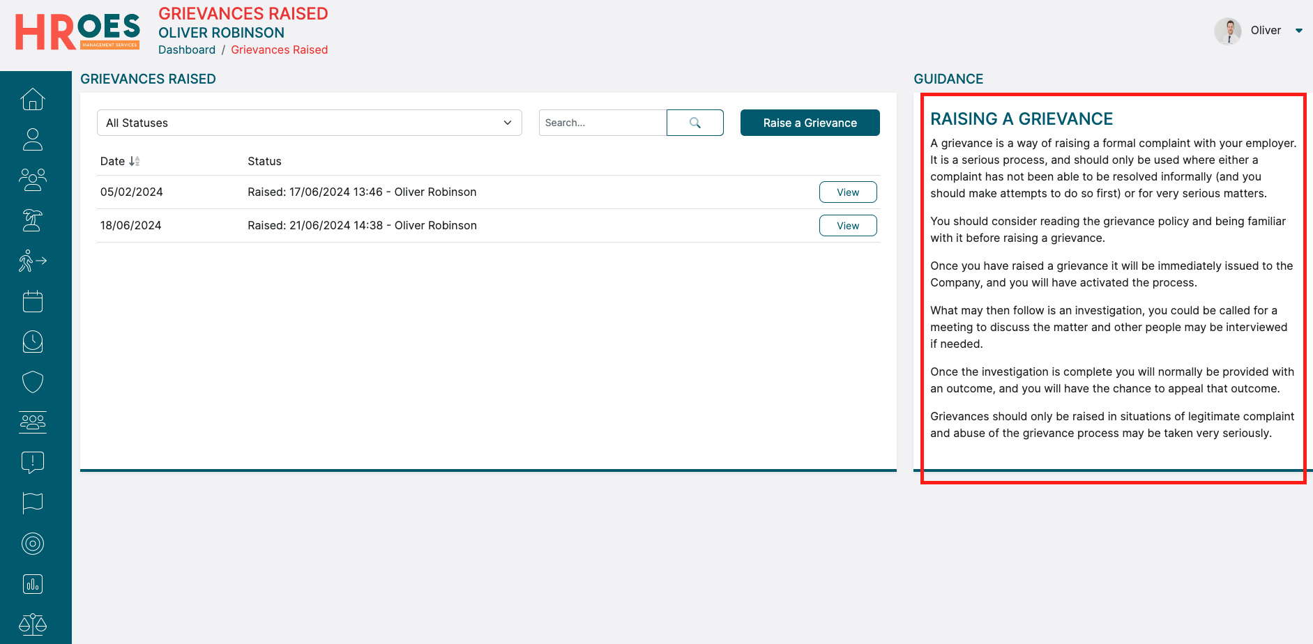 This article will guide you on how to log a Grievance against an individual in the HRoes system, and also how to view existing Grievances.