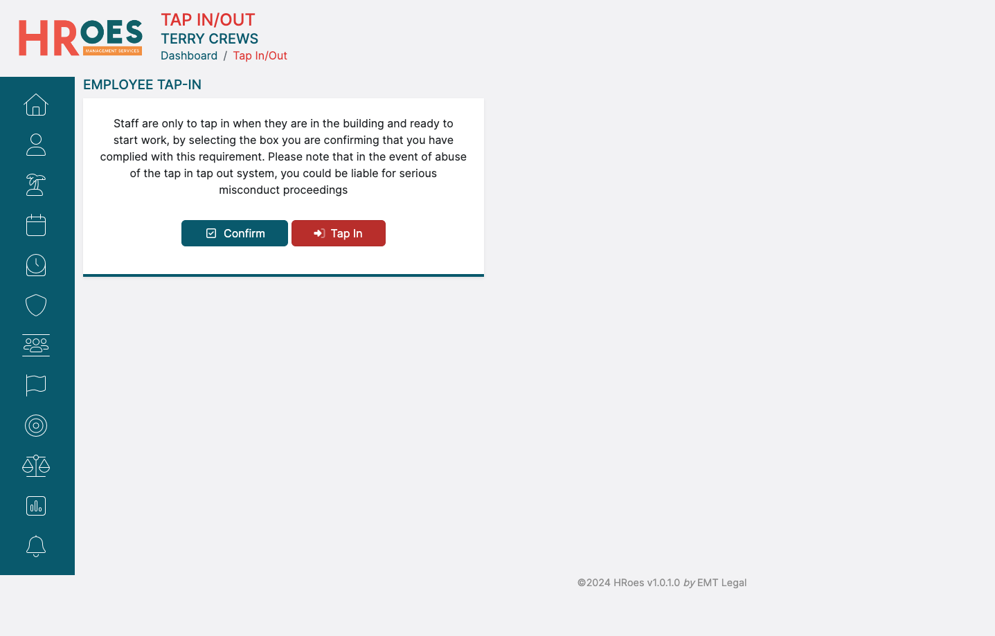 This article will guide you on how to use the Tap in/Tap out function in the HRoes system.